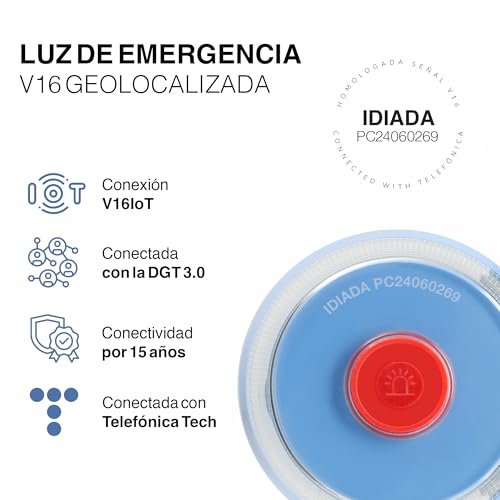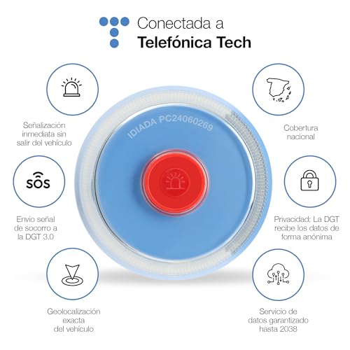 SafetyTech – Luz Emergencia Coche Homologado DGT, con SIM Telefónica y Datos Gratis hasta 2038, Baliza V16 Homologada DGT con Geolocalizador 3.0 + Funda Accesorios Coche, V16 con Geolocalización